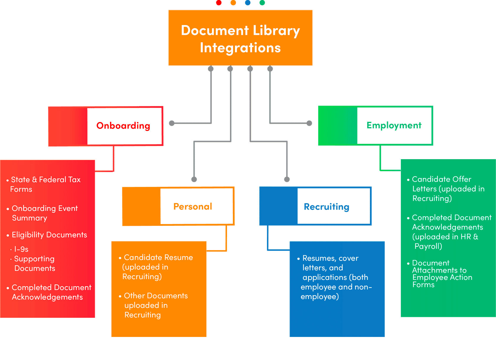 - Store important employment events (e.g., resumes, performance reviews, acknowledgement documentation)