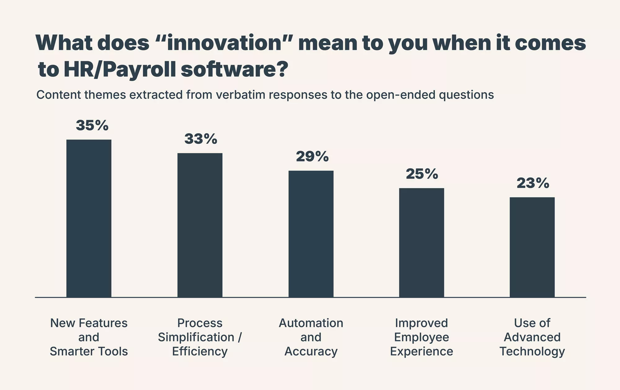 But innovation has to serve a purpose — 87% of decision-makers expect their HR and payroll software to be a strategic tool that helps achieve business goals, not just perform transactional functions. However, only 36% strongly agree their provider introduces meaningful and beneficial innovations.