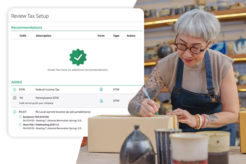 Paylocity’s small business payroll program can assist with preparing, reviewing, and filing taxes, as well as ensuring your organization stays compliant with current tax laws.